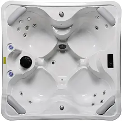 Квадратный гидромассажный СПА-бассейн Joy Spa JY 8018 в корпусе оснащен 69 форсунками, из них 59 - водные форсунки для гидромассажа, а через остальные 10 подаются мощные регулируемые струи воздуха. Данный бассейна рассчитан на одновременное нахождение в нем 5 человек.