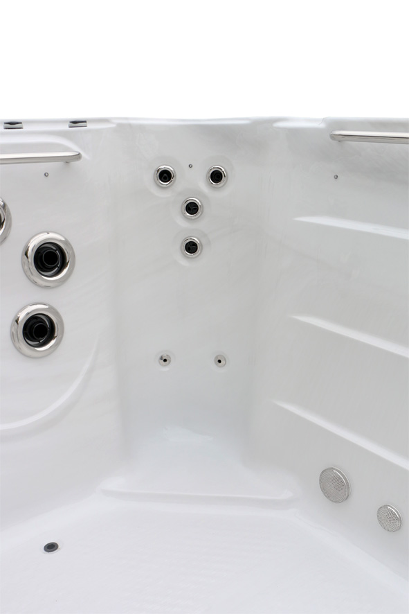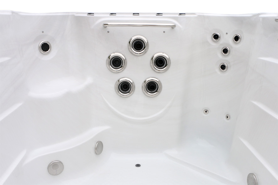 Мощная система с тремя насосами по 2,2 кВт и дополнительным насосом 1,5 кВт обеспечивает эффективный массаж 20 форсунками. Оптимальное распределение водяных струй гарантирует приятное расслабление всех групп мышц.